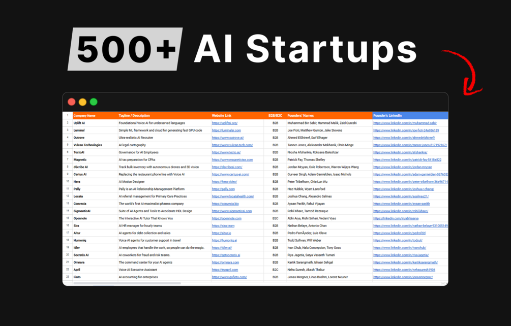 The official YC startup directory doesn’t let you filter by AI — so I did the work for you. This list is fully filtered, organized, and ready to use, saving you hours of manual searching.